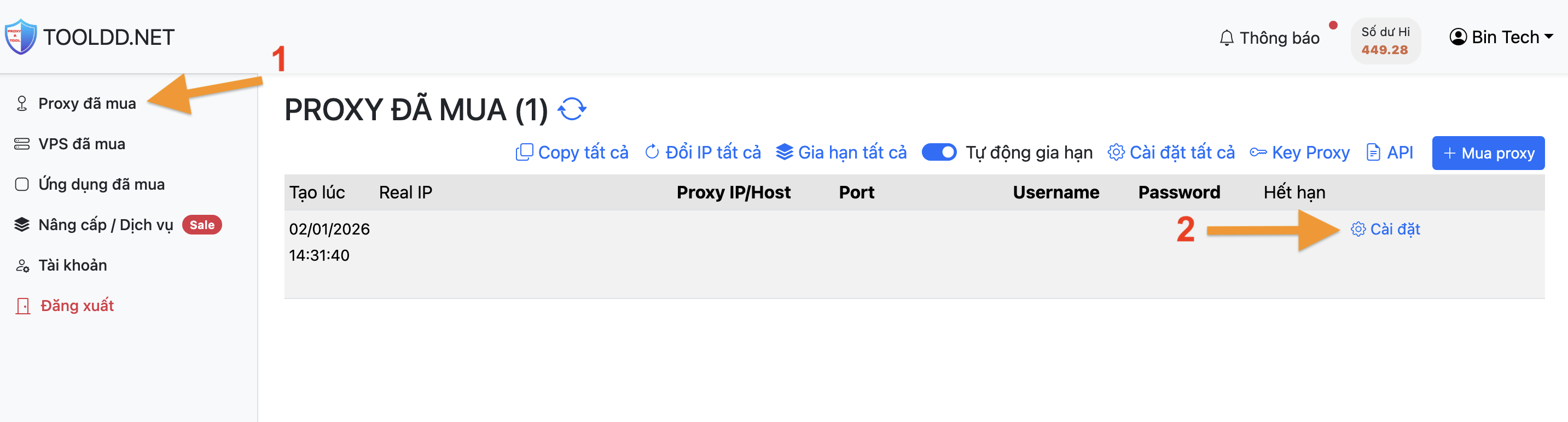 Bạn cần tạo tài khoản trên website https://tooldd.net để quản lý các proxy sau khi mua